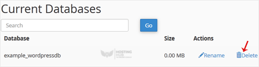 3. Unter Aktuelle Datenbanken können Sie eine Liste aller Ihrer Datenbanken sehen. Suchen Sie die Datenbank, die Sie entfernen möchten, und klicken Sie auf Löschen.