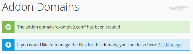 Ar trebui să vedeți un mesaj că domeniul addon a fost creat.