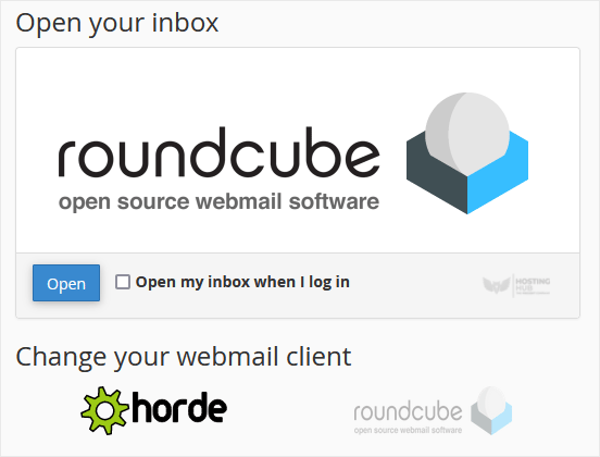 2. Klicken Sie auf der Webmail-Seite von cPanel auf einen beliebigen Webmail-E-Mail-Reader wie Horde, Roundcube oder eine andere verfügbare Anwendung.
