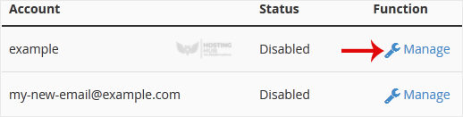3. Auf der BoxTrapper-Seite sehen Sie eine Liste Ihrer E-Mails unter der Überschrift Konto und den Status von BoxTrapper unter der Überschrift Status. Wählen Sie Verwalten.