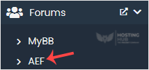4. On the left side, locate the Forums category. Click on it and then on the AEF link that appears.