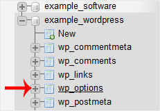 4. Selectați tabelul corespunzător pe care doriți să îl editați. Dacă doriți să schimbați numele blogului WordPress, atunci selectați "wp-options".