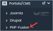 4. On the left side, locate the Portal/CMS category. Click on it and then on the PHP-Fusion link that appears.