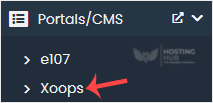 4. On the left side, locate the Portal/CMS category. Click on it and then on the Xoops link that appears.