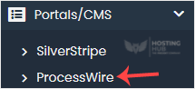 4. Suchen Sie auf der linken Seite die Kategorie Portal/CMS. Klicken Sie darauf und dann auf den erscheinenden Link ProcessWire.