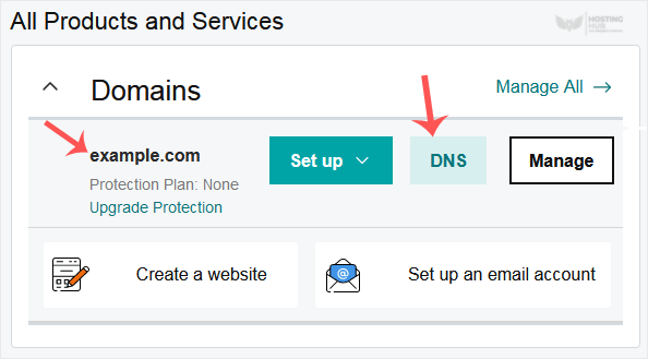 3. Nach einer erfolgreichen Anmeldung klicken Sie im Bereich Domains auf DNS neben der Domain, die Sie verwalten möchten.