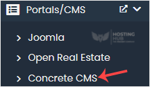 4. Suchen Sie auf der linken Seite die Kategorie Portal/CMS. Klicken Sie darauf und dann auf den Link Concrete CMS, der erscheint.
