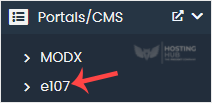 4. Suchen Sie auf der linken Seite die Kategorie Portal/CMS. Klicken Sie darauf und dann auf den Link e107, der erscheint.