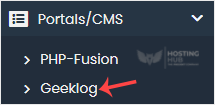 4. Suchen Sie auf der linken Seite die Kategorie Portal/CMS. Klicken Sie darauf und dann auf den Link Geeklog, der erscheint.