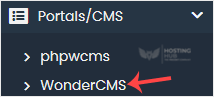 4. Suchen Sie auf der linken Seite die Kategorie Portal/CMS. Klicken Sie darauf und dann auf den Link WonderCMS, der erscheint.