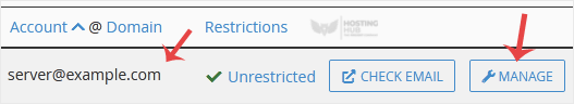 4. Wenn Ihre E-Mail-Adresse server@example.com lautet, sollten Sie auf der rechten Seite Ihrer E-Mail-Adresse eine Option Verwalten sehen. Klicken Sie auf Verwalten.