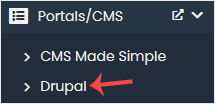 4. În partea stângă, localizați categoria Portal/CMS. Faceți clic pe aceasta și apoi pe linkul Drupal care apare.
