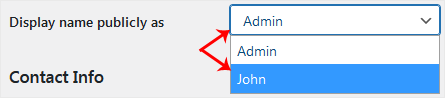 4. Wählen Sie aus dem Dropdown-Menü unter Öffentlich angezeigter Name Ihren neu hinzugefügten Spitznamen aus.